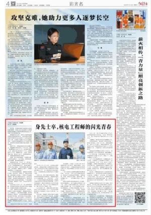 5月25日,《中國(guó)青年報(bào)》刊發(fā)報(bào)道《身先士卒,核電工程師的閃光青春》,聚焦胡海波及其團(tuán)隊(duì)成員精誠(chéng)合作,克服大修期時(shí)間短、夜間作業(yè)不確定性因素多、作業(yè)環(huán)境溫度高等多重困難,確保田灣核電蒸汽供能項(xiàng)目順利建成。中國(guó)青年網(wǎng)、中青在線、學(xué)習(xí)強(qiáng)國(guó)平臺(tái)等主流媒體積極參與轉(zhuǎn)發(fā)。